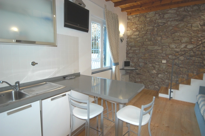cottura e un piccolo soggiorno con divano letto a due posti mentre al primo